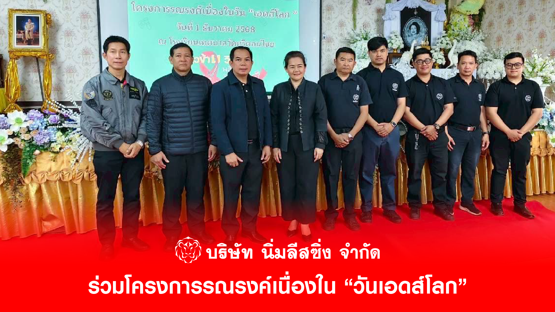บริษัท นิ่มลีสซิ่ง จำกัด เข้าร่วมโครงการรณรงค์เนื่องใน วันเอดส์โลก ณ โรงเรียนเทศบาลวัดศรีดอนไชย อำเภอเมือง จังหวัดเชียงใหม่ ...16 ธ.ค. 2568 14:12 น. -
