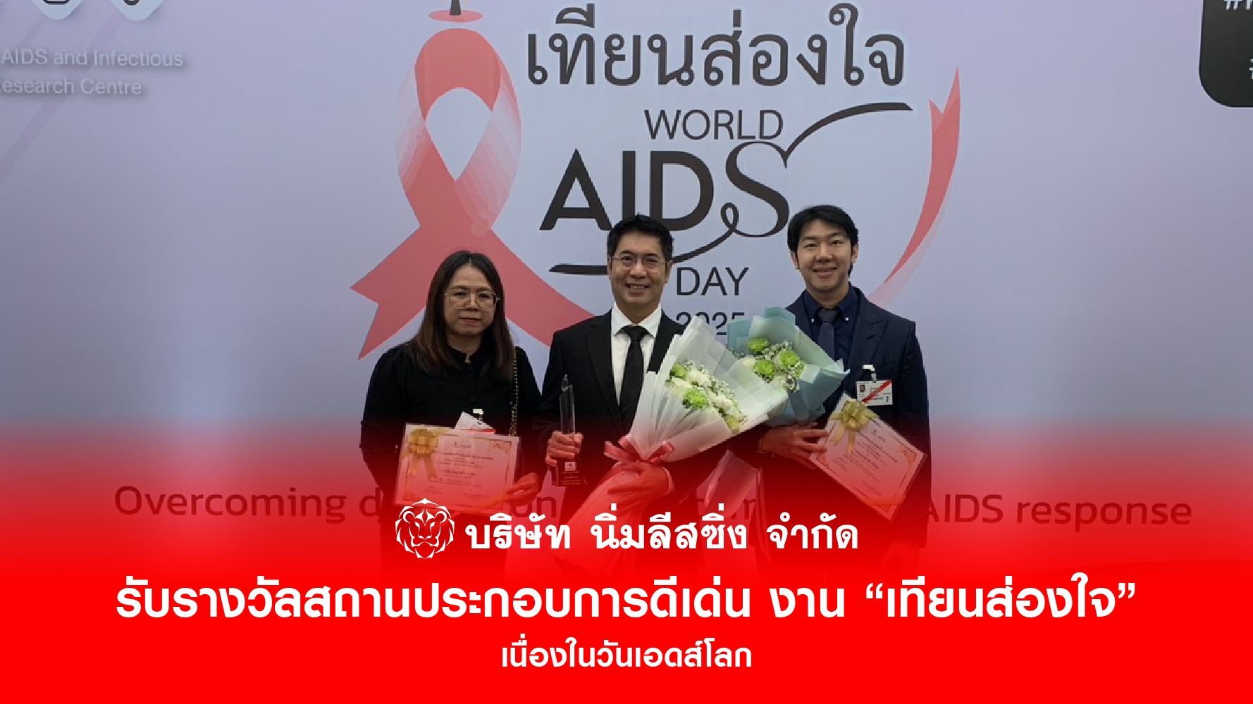 บริษัท นิ่มลีสซิ่ง จำกัด ได้รับการคัดเลือกให้เป็น "สถานประกอบการดีเด่น" ในงาน "เทียนส่องใจ" เนื่องในวันเอดส์โลก ครั้งที่ ๓๓ ...16 ธ.ค. 2568 14:16 น. -